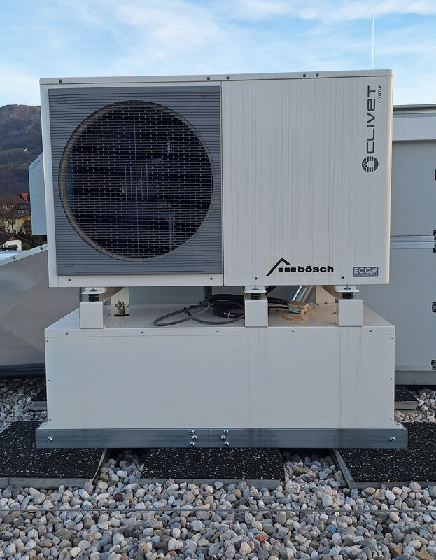 Die Generalplanung des Umbaus übernahm das renommierte Architekturbüro Marius Project ZT GmbH aus Aigen. Das erfahrene Team an Spezialisten legte ein überzeugendes Gebäudekonzept vor und koordinierte die gesamten Bauarbeiten. Zukunftsorientierte Wege beschritt das Team bei der Auswahl der HLK-Technik: Das Gebäude wird mit einer nachhaltigen Lüftungslösung von bösch klimatisiert. Nachhaltig deshalb, weil Wärme und Kälte von einer umweltfreundlichen Luft-Wasser-Wärmepumpe bereitgestellt werden. Die Wärmepumpe verwendet das natürliche Kältemittel Propan, das durch niedrige Treibhausgasemissionen sowie hohe Effizienz überzeugt.